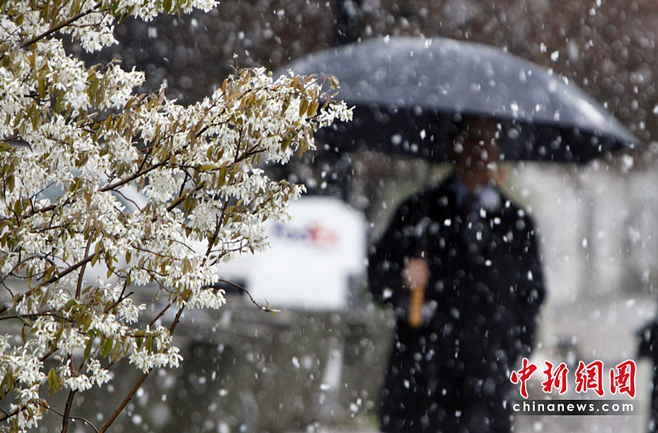 當(dāng)?shù)貢r(shí)間4月28日,美國佛蒙特州部分地區(qū)遭大雪襲擊。這場大雪給人們的出行帶來不便。圖片來源:中國新聞網(wǎng)