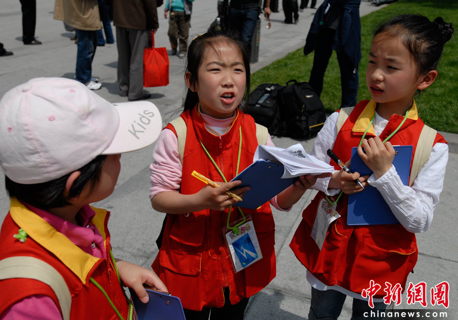 30日上午,記者在上海外灘采訪時遇到小主人報新聞學校的“小記者”們在采訪,成為他們今天的第一個采訪對象!靶∮浾摺眰冏铌P(guān)心的問題是關(guān)于世博會,“如何讓世界變得更美好”。她們都表示非常想去看世博會,最想看的是中國館,但是要留到最后看,“因為其它館都會拆掉,中國館會保留下來”。“小記者”們說,自己要從身邊小事做起,做有文明有素質(zhì)的人,并表示希望自己將來成為真正的“大記者”,更好地報道上海。吳歆/文 王紅綱/圖