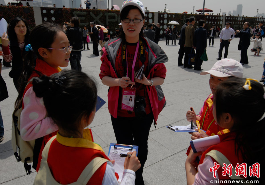 30日上午,記者在上海外灘采訪時(shí)遇到小主人報(bào)新聞學(xué)校的“小記者”們在采訪,成為他們今天的第一個(gè)采訪對象!靶∮浾摺眰冏铌P(guān)心的問題是關(guān)于世博會(huì),“如何讓世界變得更美好”。她們都表示非常想去看世博會(huì),最想看的是中國館,但是要留到最后看,“因?yàn)槠渌^都會(huì)拆掉,中國館會(huì)保留下來”!靶∮浾摺眰冋f,自己要從身邊小事做起,做有文明有素質(zhì)的人,并表示希望自己將來成為真正的“大記者”,更好地報(bào)道上海。吳歆/文 王紅綱/圖