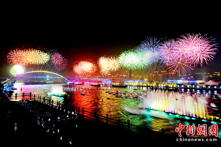 4月30日晚21時(shí)28分,在世博會(huì)焰火燈光表演開始。萬(wàn)千煙花爭(zhēng)奇斗妍,黃浦江兩岸綿延3.28公里同時(shí)奏響火樹銀花不夜天的華彩世博樂(lè)章。圖片來(lái)源:中國(guó)新聞網(wǎng)