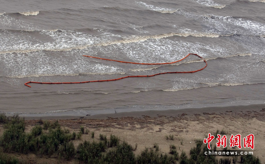 4月30日,在美國路易斯安那州海岸,為阻隔原油擴散而設(shè)的護欄帶被海風(fēng)浪沖到岸邊。當(dāng)天,美國總統(tǒng)奧巴馬下令調(diào)查墨西哥灣石油鉆井平臺爆炸事件,以避免將來類似事件再次發(fā)生。平臺爆炸沉沒后泄漏的原油當(dāng)天已漂至美國沿岸。圖片來源:中國新聞網(wǎng)
