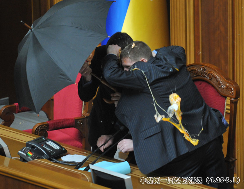 4月27日,基輔,烏克蘭議會就俄羅斯黑海艦隊駐扎問題進(jìn)行討論時出現(xiàn)混亂,數(shù)千人在議會外示威,會場內(nèi)有人投擲煙霧彈和雞蛋,大廳內(nèi)煙霧彌漫,場面一度混亂。圖片來源:中國新聞網(wǎng)>>點擊觀看詳細(xì)內(nèi)容