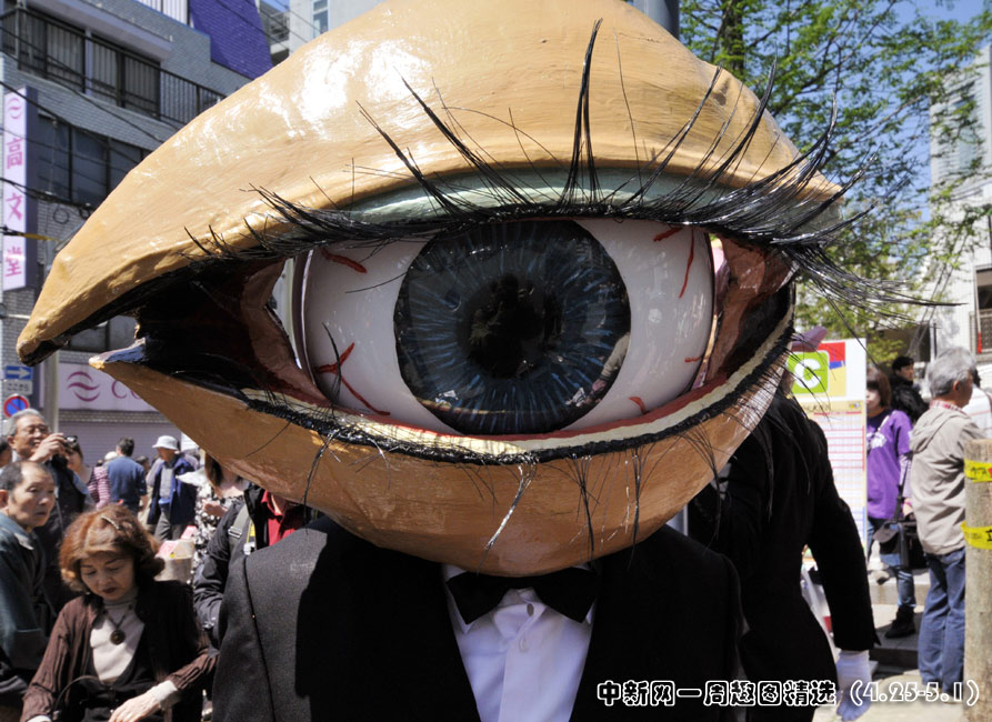4月26日,日本一個(gè)表演藝術(shù)團(tuán)體扮成“獨(dú)眼怪人”在街頭亮相,大玩行為藝術(shù)。圖片來源:中國(guó)新聞網(wǎng)>>點(diǎn)擊觀看詳細(xì)內(nèi)容