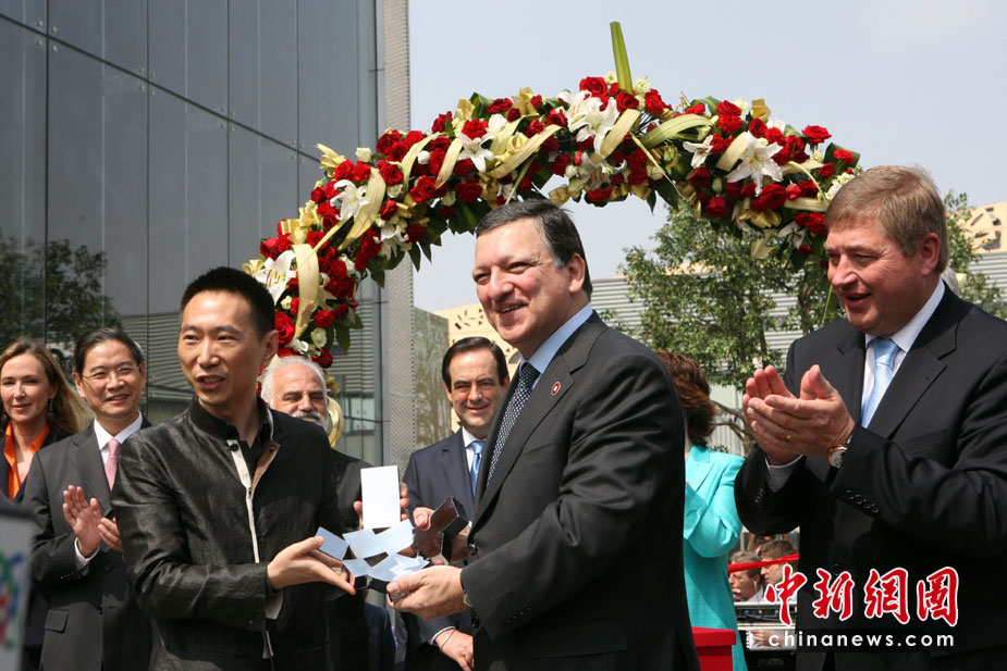 5月1日,歐洲委員會(huì)主席巴羅佐(中)在上海世博園區(qū)出席歐盟館開(kāi)館儀式。當(dāng)日,上海世博會(huì)正式開(kāi)園。中新社發(fā) 湯彥俊 攝