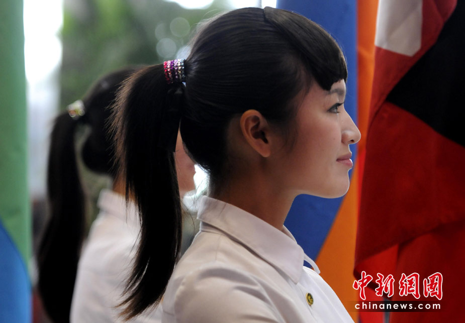 5月1日,2010年上海世博會正式開園,英姿颯爽的女子旗手們參加清晨的儀式。中新社記者 賈國榮攝