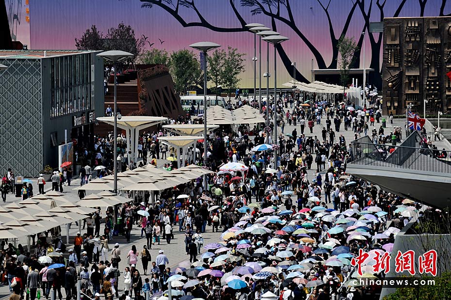 5月1日,2010上海世博園正式開園第一天,參觀者從浦東、浦西10多個出入口進入園區(qū),世博園區(qū)內游人如潮。圖片來源:中國新聞網