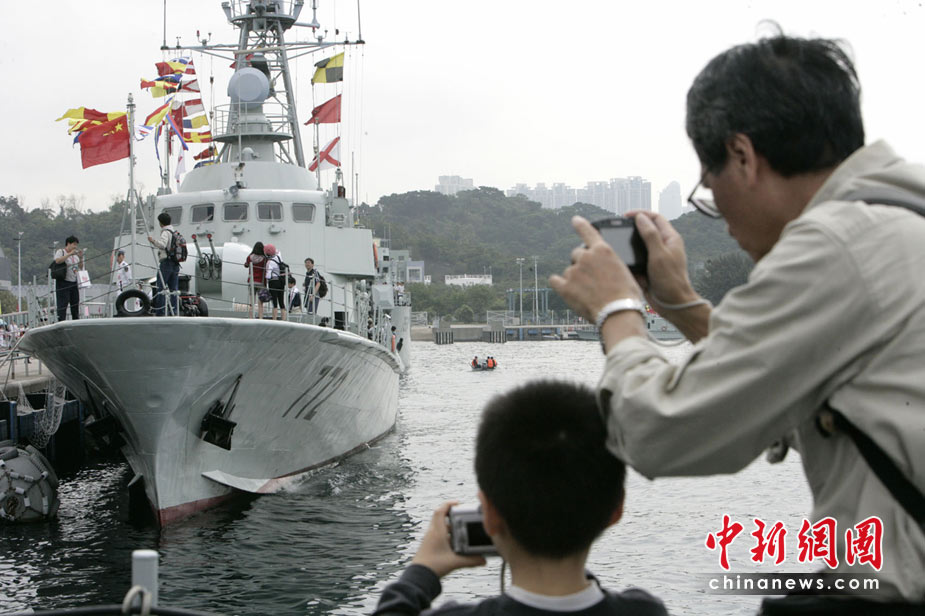 為慶!拔逡弧眹H勞動節(jié),進(jìn)一步增進(jìn)與香港社會各界相互溝通與交流,中國人民解放軍駐香港部隊5月1日在昂船洲軍營舉辦開放日活動,開放兩艘導(dǎo)護(hù)艇和兩艘登陸艇供市民自由參觀。中新社發(fā) 張勤 攝