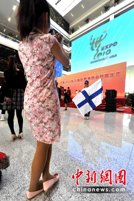 5月1日,為2010年上海世博會開園服務的國旗女孩們,顯示出濃厚的國家和世界情結。中新社記者 賈國榮攝
