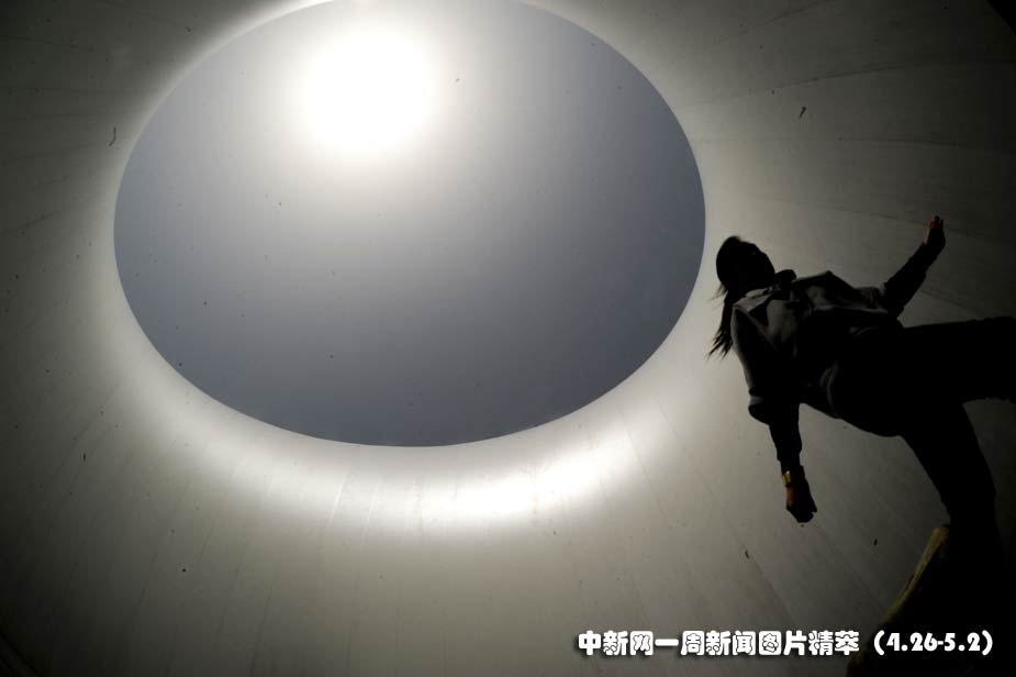 4月27日(周二),一位女士走過(guò)上海世博園芬蘭館的圓形天井。