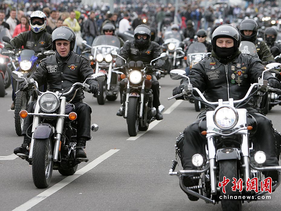 當?shù)貢r間5月1日,陶宛首都維爾紐斯市,數(shù)千摩托手舉行了機車大游行。圖片來源:中國新聞網(wǎng)