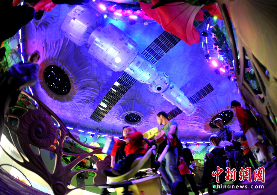 5月2日,上海世博園俄羅斯館內的奇幻景觀吸引吸引許多兒童前往參觀!皟和壑械奈磥硎澜纭笔嵌砹_斯館所反映的重要主題。中新社發(fā) 廖攀 攝