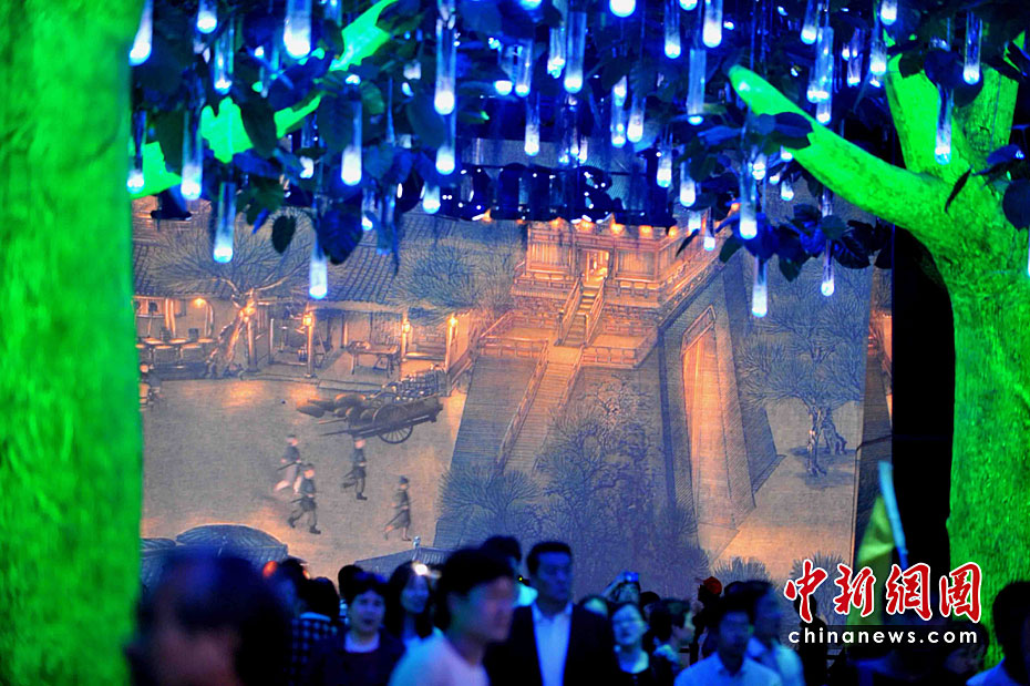 5月2日,中外觀眾依然最熱捧上海世博會中國館的“鎮(zhèn)館之寶”——巨幅放大電子動態(tài)版的北宋畫家張擇端名作《清明上河圖》。此世博版的《清明上河圖》高6.3米,長130余米,約是原圖的30倍,需要12臺電影級的投影儀同時工作。整個活動畫面以4分鐘為一個周期,盡展宋朝盛世的都市日夜風(fēng)情。中新社記者 賈國榮 攝
