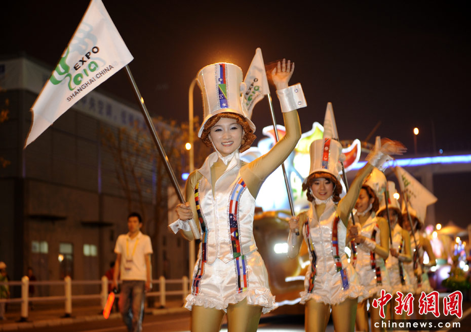 世博盛裝夜巡游 花車美女盡顯異域風情