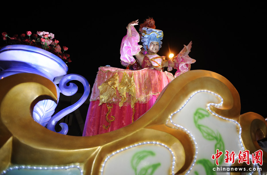 5月2日晚,由一輛輛充滿(mǎn)異域風(fēng)情的花車(chē)和身著盛裝的表演者組成的“歡樂(lè)盛裝大巡游”在世博園區(qū)舉行。中新網(wǎng)記者 王紅綱 攝