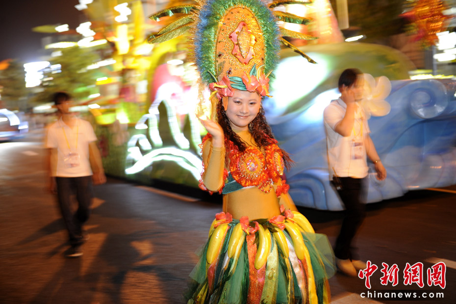 5月2日晚,由一輛輛充滿異域風(fēng)情的花車和身著盛裝的表演者組成的“歡樂盛裝大巡游”在世博園區(qū)舉行。中新網(wǎng)記者 王紅綱 攝
