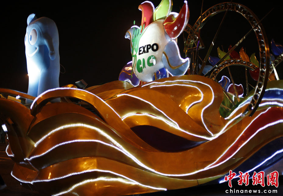 5月2日晚,由一輛輛充滿異域風情的花車和身著盛裝的表演者組成的“歡樂盛裝大巡游”在世博園區(qū)舉行。中新網(wǎng)記者 盛佳鵬 攝