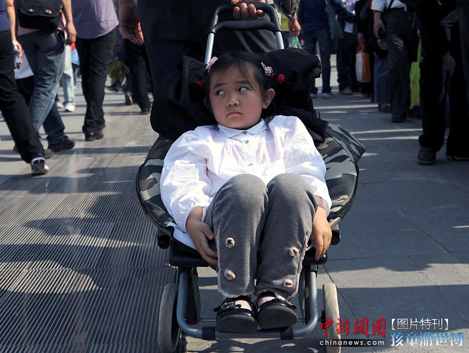 隨著上海世博園正式開園,各大展館迎來了八方游客,其中不乏一些小孩子也來上海感受世博盛況。中新社發(fā) 許康平 攝