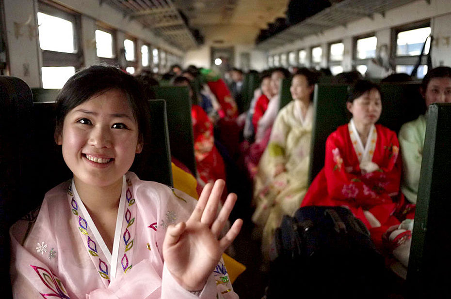 5月2日,載著198名朝鮮紅樓夢(mèng)劇組演員的專列駛?cè)氲|口岸。由朝鮮國(guó)家級(jí)藝術(shù)團(tuán)-血海歌劇團(tuán)創(chuàng)作的歌舞劇《紅樓夢(mèng)》將于5月6日至9日登陸北京電視臺(tái)大劇院,這個(gè)超大演員陣容亦創(chuàng)下近年來華國(guó)外演出人數(shù)之最。圖片來源:新華網(wǎng)