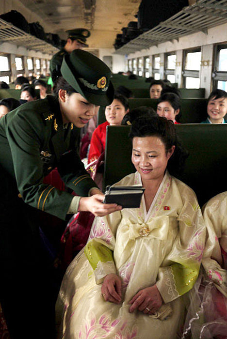 5月2日,載著198名朝鮮紅樓夢(mèng)劇組演員的專列駛?cè)氲|口岸。由朝鮮國(guó)家級(jí)藝術(shù)團(tuán)-血海歌劇團(tuán)創(chuàng)作的歌舞劇《紅樓夢(mèng)》將于5月6日至9日登陸北京電視臺(tái)大劇院,這個(gè)超大演員陣容亦創(chuàng)下近年來(lái)華國(guó)外演出人數(shù)之最。圖片來(lái)源:新華網(wǎng)