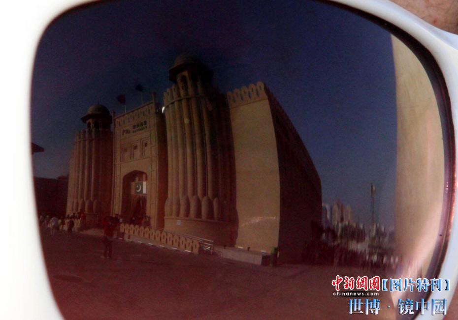 世博園開園3天,天氣一直晴熱,不少游客帶起墨鏡來遮擋刺目的陽光,從鏡片的折射中看世博園,別有一番趣味。中新社記者 湯彥俊攝