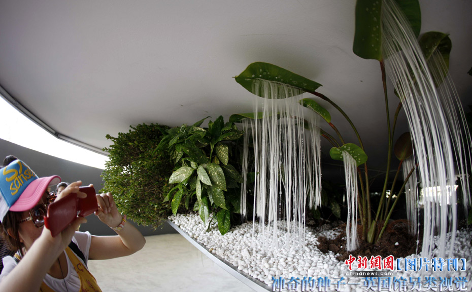 上海世博園開(kāi)園才數(shù)日,自號(hào)“種子圣殿”的英國(guó)館已成人氣最旺場(chǎng)館之一。該館由6萬(wàn)根亞克力桿巧妙構(gòu)成,隨風(fēng)搖動(dòng),頗為新奇。其每根桿子里都含有植物種子。中新社記者 盛佳鵬 攝