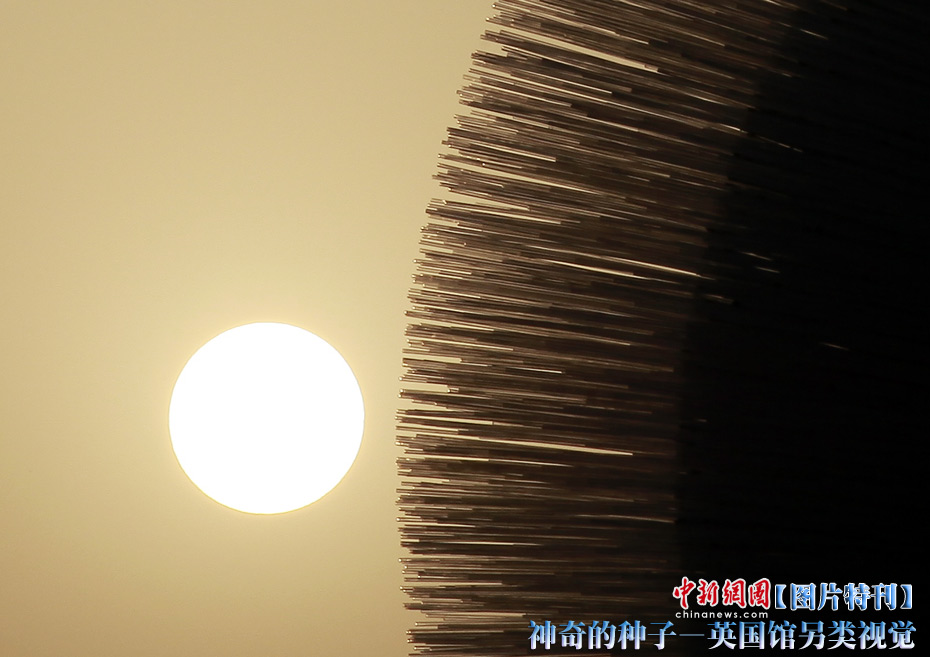 上海世博園開園才數(shù)日,自號(hào)“種子圣殿”的英國(guó)館已成人氣最旺場(chǎng)館之一。該館由6萬根亞克力桿巧妙構(gòu)成,隨風(fēng)搖動(dòng),頗為新奇。其每根桿子里都含有植物種子。中新社記者 盛佳鵬 攝