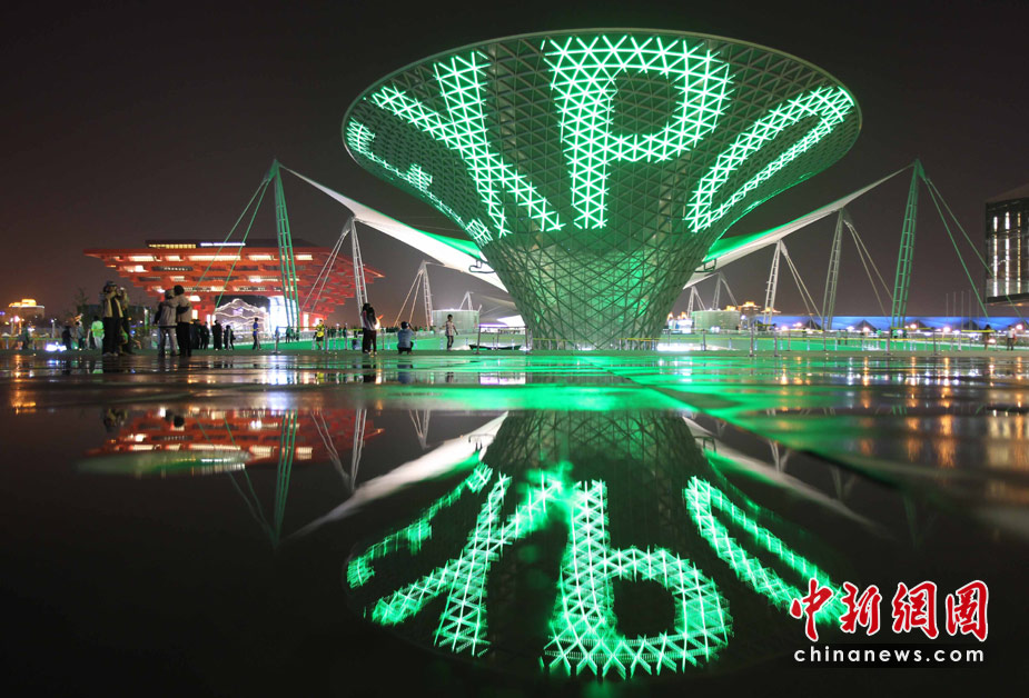 夜幕下的上海世博園區(qū)處處流露光華與璀璨,世博軸上的“陽光谷”成為一個個流光溢彩的“夜光杯”,以不同色調(diào)交織成流動的光影旋律,給游客們帶來難以忘懷的感受。圖為世博軸“陽光谷”與中國館的燈光交相輝映,“陽光谷”上打出世博會的英文簡稱。中新社發(fā) 宗金柱 攝