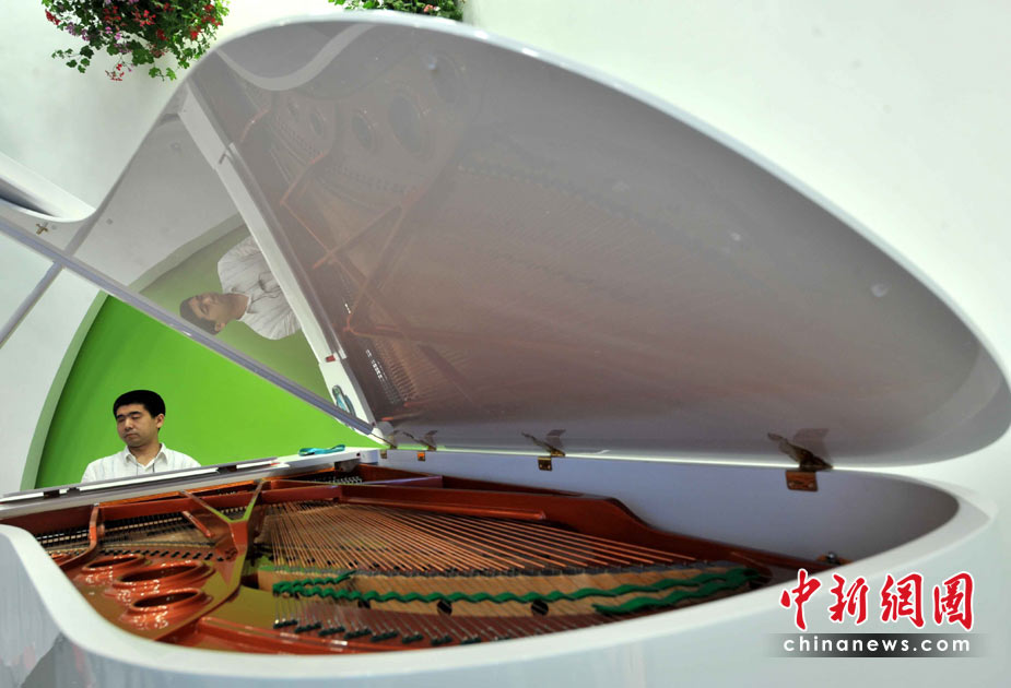 5月4日是上海世博會第四天,盲人鋼琴家孫巖在生命陽光館專設(shè)區(qū)域為眾多殘疾人和觀眾演奏,導(dǎo)盲犬靜臥在他的腳邊,這是世博會歷史上第一次為殘疾人設(shè)館。孫巖2005年獲得“日本橫濱第一屆國際殘疾人鋼琴比賽”金獎,他是中央音樂學(xué)院有史以來第一位盲人大學(xué)生和研究生。他的傾情演奏感動全場,掌聲連連。中新社發(fā) 賈國榮 攝