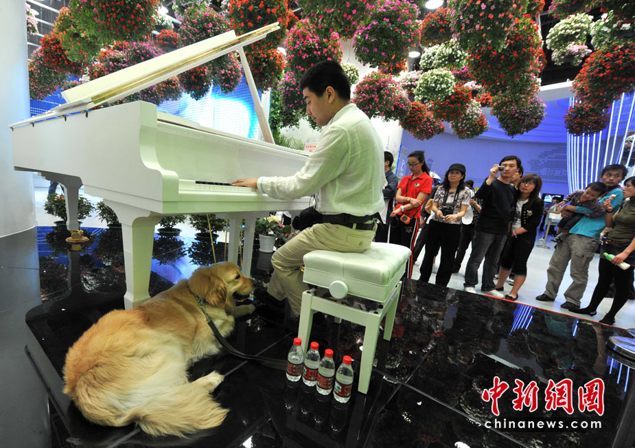 5月4日是上海世博會第四天,盲人鋼琴家孫巖在生命陽光館專設(shè)區(qū)域?yàn)楸姸鄽埣踩撕陀^眾演奏,導(dǎo)盲犬靜臥在他的腳邊,這是世博會歷史上第一次為殘疾人設(shè)館。孫巖2005年獲得“日本橫濱第一屆國際殘疾人鋼琴比賽”金獎,他是中央音樂學(xué)院有史以來第一位盲人大學(xué)生和研究生。他的傾情演奏感動全場,掌聲連連。中新社發(fā) 賈國榮 攝