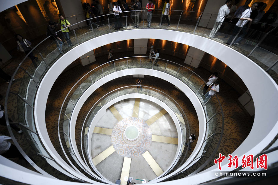 5月4日,上海世博園沙特館采用螺旋坡道引導(dǎo)觀眾。 中新社發(fā) 廖攀 攝