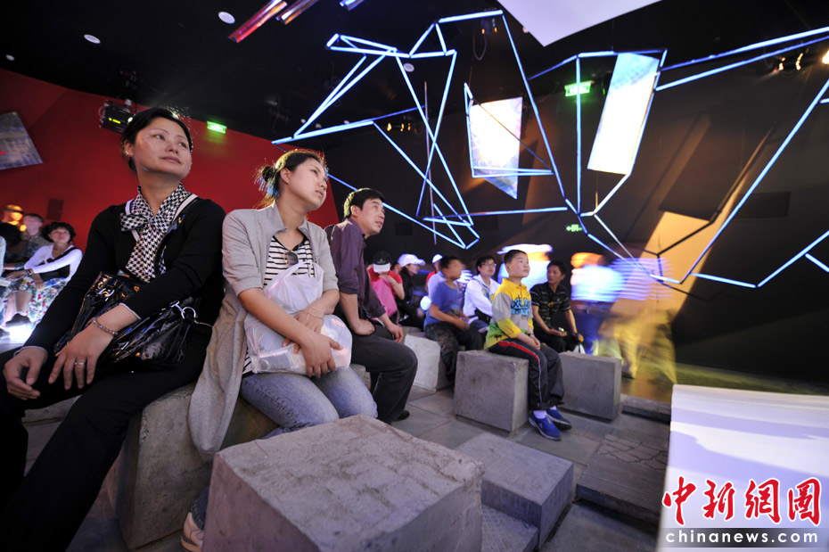 觀眾在觀看模擬演出,做的不是椅子,是一個個“石凳”,感覺就像是在廣場上。中新網(wǎng)記者 王紅綱 攝