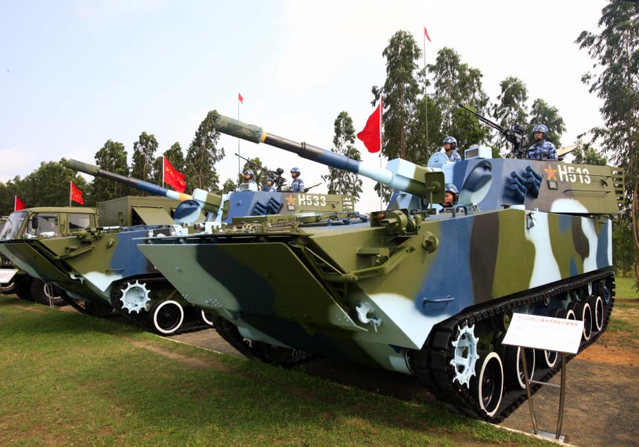 海軍陸戰(zhàn)隊兩棲突擊車在慶典儀式上進(jìn)行展示。圖片來源:新華網(wǎng) 查春明攝