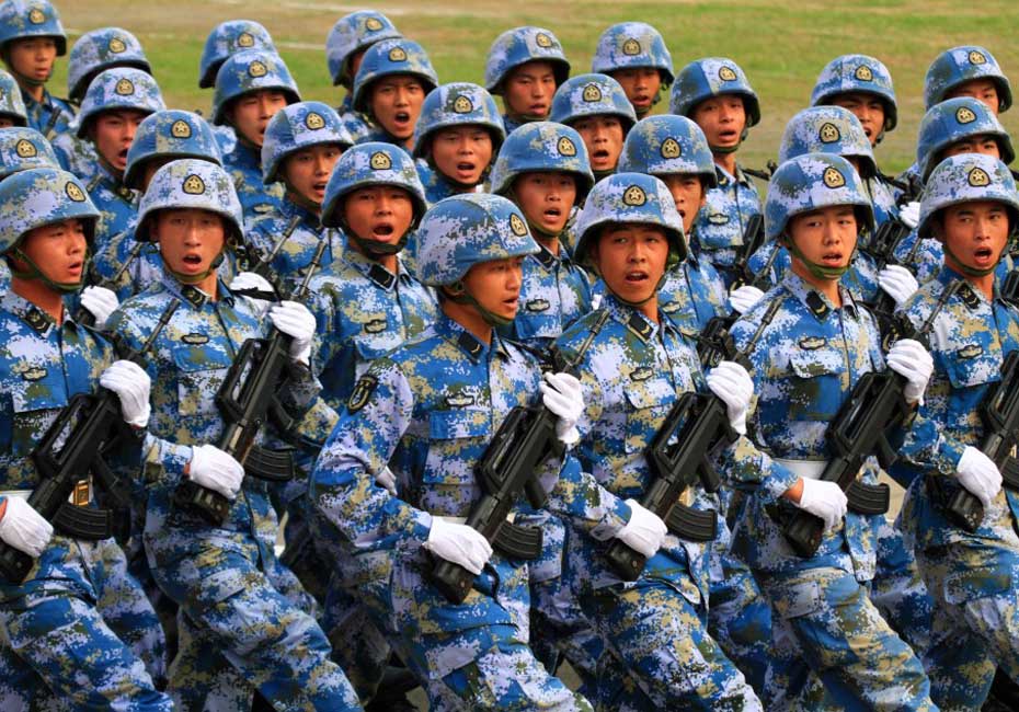 海軍陸戰(zhàn)隊員通過主席臺。圖片來源:新華網(wǎng) 查春明攝