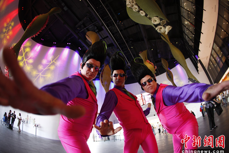 澳大利亞頂級(jí)街頭表演劇團(tuán)“鉻合金(Chrome)”在澳大利亞國(guó)家館閃亮登場(chǎng),他們以幽默風(fēng)趣的表演、優(yōu)美動(dòng)聽(tīng)的音樂(lè)和與觀(guān)眾之間的巧妙互動(dòng),吸引了參觀(guān)者的注意力。中新社記者 盛佳鵬 攝
