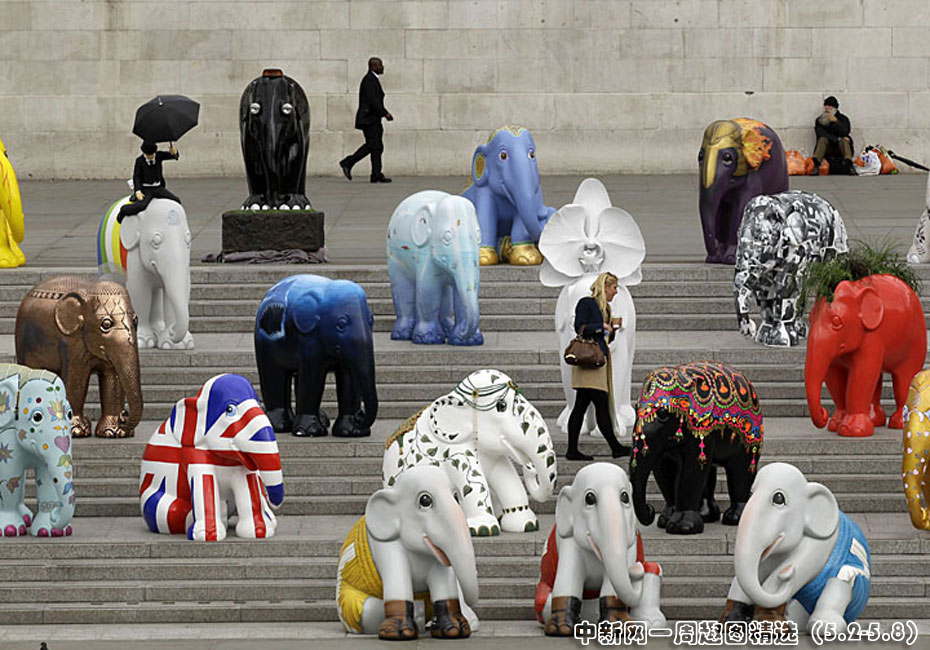 5月4日,2010年倫敦大象游行活動(dòng)當(dāng)日在特拉法爾加廣場(chǎng)啟動(dòng)。260個(gè)真象大小的彩繪雕塑將在倫敦各處展出,并將于6月30日拍賣(mài)為慈善組織籌款。圖片來(lái)源:中國(guó)新聞網(wǎng)>>點(diǎn)擊觀看詳細(xì)內(nèi)容