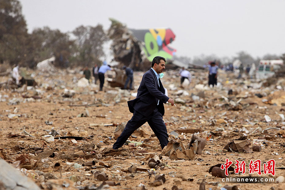5月12日,一架從南非起飛的利比亞航班在利比亞首都的黎波里機場墜毀,機上103名乘客和機組人員遇難。圖片來源:中國新聞網(wǎng)