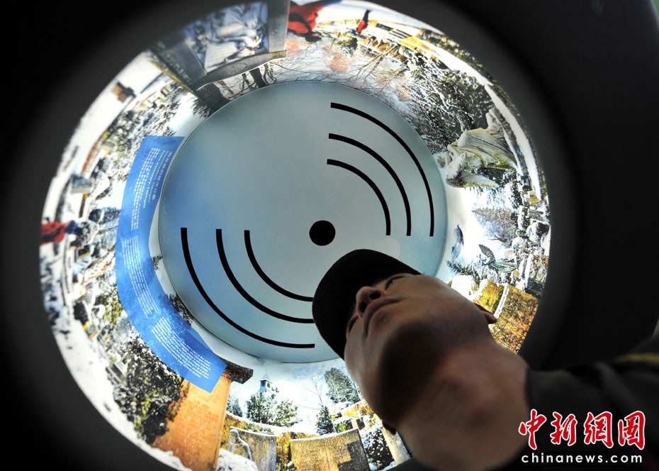 圖為德國(guó)館內(nèi)的360度環(huán)繞視聽(tīng)展示。 中新網(wǎng)記者 王紅綱 攝