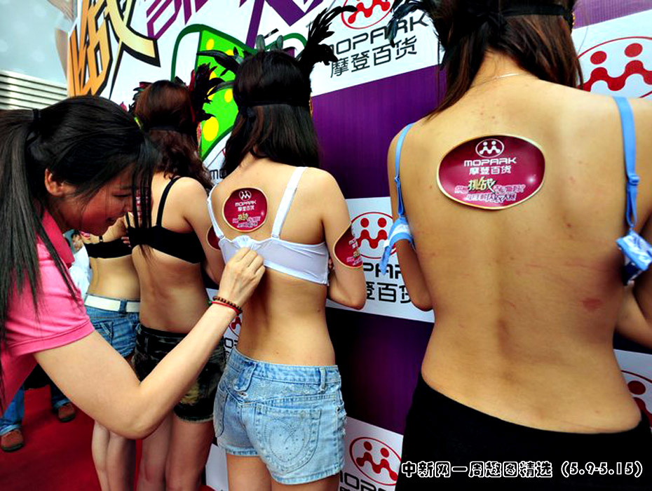 5月8日,在廣州天河某個百貨商場門口上演了一場另類的“解內(nèi)衣”比賽。圖片來源:中國新聞網(wǎng)>>點擊觀看詳細內(nèi)容
