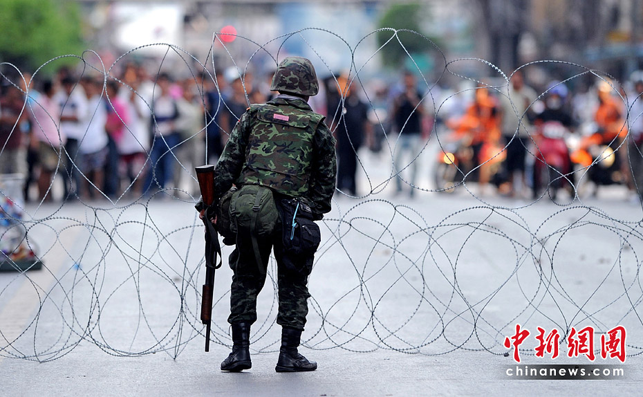 泰國政府軍和反政府示威者5月14日深夜在曼谷爆發(fā)嚴重暴力沖突。曼谷緊急醫(yī)療機構(gòu)15日稱,截止當?shù)貢r間早晨6時,沖突已導致16人死亡,至少141受傷,傷者中包括3名外國人。圖片來源:中國新聞網(wǎng)