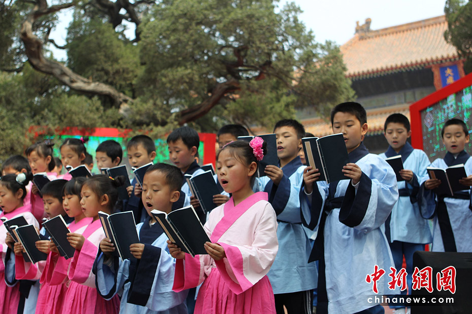 5月15日,首屆“兩岸漢字藝術(shù)節(jié)”新聞發(fā)布會(huì)在北京孔廟舉行。原文化部長(zhǎng)、著名作家王蒙與臺(tái)灣文化總會(huì)會(huì)長(zhǎng)劉兆玄等共同書寫漢字——“漢字藝術(shù)源遠(yuǎn)流長(zhǎng)”。 中新社發(fā) 蘇丹 攝