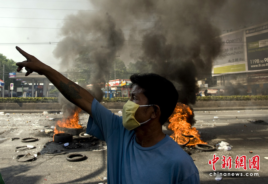泰國(guó)曼谷急救機(jī)構(gòu)16日凌晨說,截至15日午夜,泰國(guó)軍隊(duì)與“紅衫軍”連續(xù)兩天沖突造成的死亡人數(shù)升至24人,另有211人受傷。圖片來源:中國(guó)新聞網(wǎng)