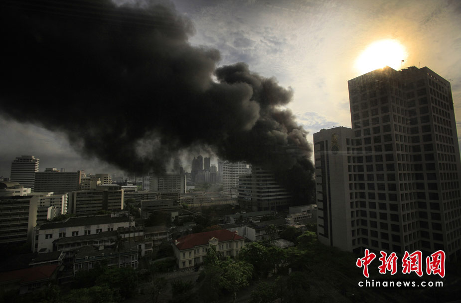 19日,發(fā)起驅(qū)散行動(dòng)的泰國(guó)軍方突破了反政府“紅衫軍”示威者在曼谷市中心所筑路障,進(jìn)入其營(yíng)地內(nèi),雙方爆發(fā)槍?xiě)?zhàn)。目擊者稱,已有至少9人受傷,多數(shù)是被槍擊中。 圖為“紅衫軍”成員在曼谷一所醫(yī)院附近集會(huì)并燃燒輪胎。