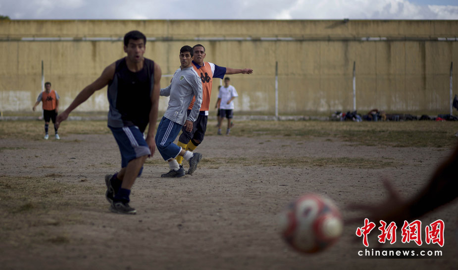 5月18日,阿根廷布宜諾斯艾利斯,作為一項(xiàng)文化活動(dòng)的一部分,阿根廷政府在世界杯到來(lái)之前組織幾家監(jiān)獄進(jìn)行足球比賽。