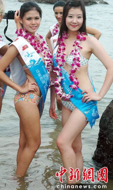 5月21日,海南三亞參加第35屆國際比基尼小姐全球總決賽的64位各國佳麗開始了她們在三亞為期9天的時尚美麗之旅。當日,佳麗們前往著名的天涯海角、大小洞天等景區(qū),拍攝外景,體驗美麗的三亞熱帶風(fēng)光,展現(xiàn)美麗風(fēng)采。中新社記者 尹海明 攝