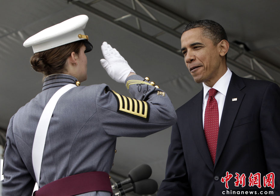 5月22日,美國紐約州北部哈德遜河西岸西點鎮(zhèn)的西點軍校舉行2010年度畢業(yè)典禮,美國總統(tǒng)奧巴馬出席典禮。本屆共有1002名學(xué)員獲得理學(xué)學(xué)士學(xué)位,并被授予陸軍少尉軍銜。圖片來源:中國新聞網(wǎng)