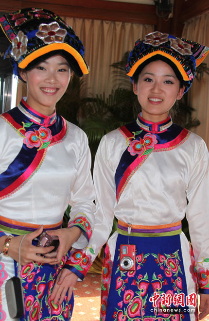 5月24日下午,“四川省感謝臺灣社會各界援助‘5.12’地震災(zāi)區(qū)見面會”在臺北圓山大飯店舉行,“川妹子”展現(xiàn)親和笑容。 中新網(wǎng)記者 董會峰 攝