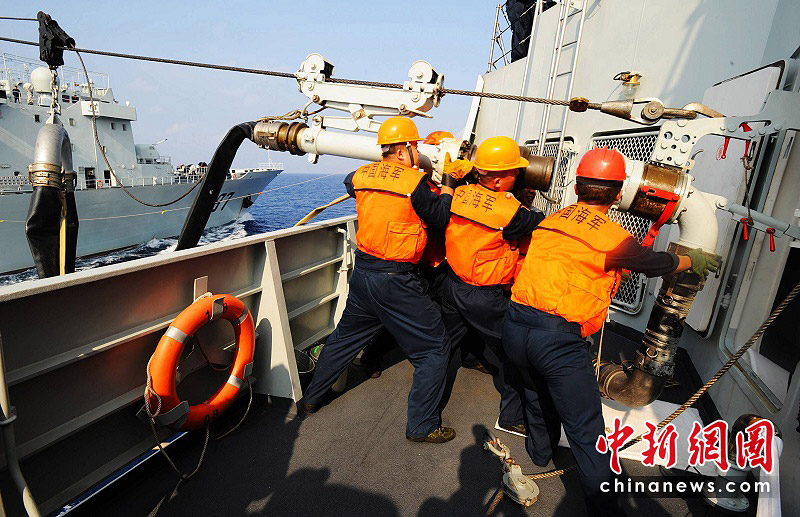 3月12日,在阿拉伯海上進行第二次補給。江山 攝