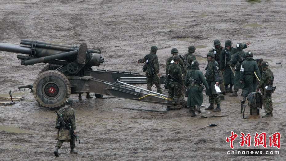 5月24日,韓國軍隊在靠近韓朝非軍事區(qū)的揚口舉行軍事演習。圖片來源:中國新聞網(wǎng)