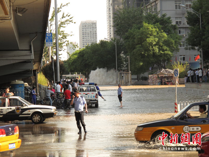 2010年5月25日下午4點半左右,北京京廣橋附近發(fā)生水管爆裂,水柱噴射到兩層樓高,流出的水已成河,造成東三環(huán)嚴(yán)重?fù)矶。沈?攝