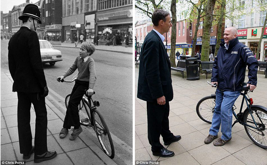 照片上的兩位主人公都無法記起當(dāng)時(shí)究竟在聊些什么,大概是調(diào)皮又愛炫耀的小男孩把車騎上了機(jī)動(dòng)車道被警察叔叔批評吧。現(xiàn)在小男孩長大了,當(dāng)年的警界新人也成了退休的老警官。